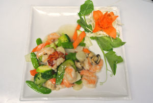 Oriental Cafe is very conveniently located on University Boulevard across from Costco. The menu choices are vast and encompass Chinese, Japanese and Singaporean regular and special dishes. Nigiri and maki shushi are available; there are “heart-healthy” selections and a variety of hot and spicy dishes.